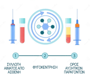 2. Το αίμα τοποθετείται σε ειδικό μηχάνημα φυγοκέντρησης για να απομονωθούν οι αυξητικοί παράγοντες.